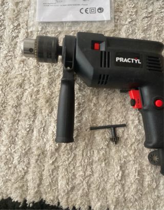 Taladro percutor de la marca Practyl, modelo ID-13G. - Incluye manual de instrucciones. - Taladro - Llave para el portabrocas.