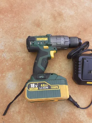 Taladro percutor de la marca Teccpo. - Diseño ergonómico. - Color verde y gris.poco uso muy potente en perfectas condiciones se vende por no usar. Incluye batería y cargador luz Led para trabajos en la oscuridad