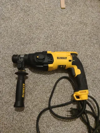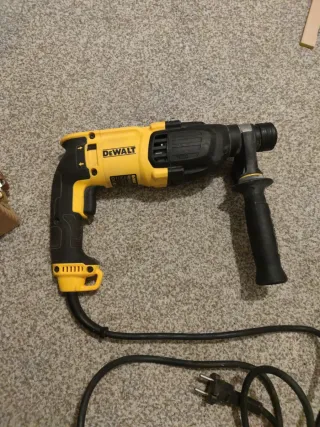 Taladro percutor de la marca Dewalt. - Color amarillo y negro. - Mango auxiliar. - Cable de alimentación.