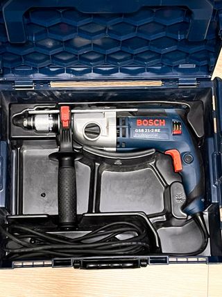 Taladro percutor Bosch GSB 21-2 RE Professional. como nueva. - Incluye maletín de transporte. - Mango auxiliar. - Cable de alimentación.