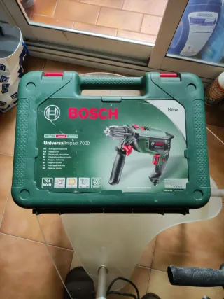 Taladro percutor Bosch UniversalImpact 7000 en su maletín original. Ideal para trabajos en el hogar. - Potencia de 701 Watt. - Incluye maletín para transporte y almacenamiento. - Modelo: UniversalImpact 7000.