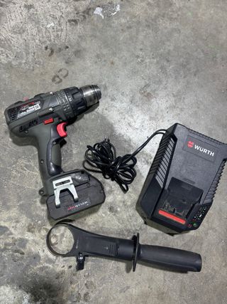 Se vende taladro Wurth BS-18-A junto con su cargador y dos baterías. - Taladro inalámbrico y percutor - (las baterías cargan muy poquito,sólo para comprobar que funciona,baterías en mal estado,NO FUNCIONAN) - Cargador Wurth AL 30-50. - Dos baterías Wurth SD 18V. - (las baterías no funcionan) - Incluye todo lo visible en las imágenes.