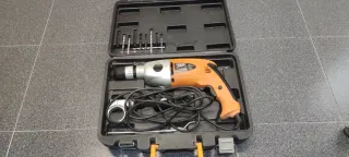 Taladro percutor de la marca Power Plus, ideal para trabajos en el hogar. Se incluye su maletín original para un fácil transporte y almacenamiento. - Mango auxiliar para mayor control. - Maletín de plástico resistente. - Un par de escobillas del motor de repuesto