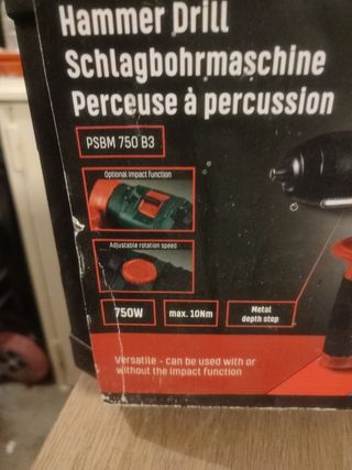 Taladro percutor Parkside en su caja original. Modelo PSBM 750 B3. - Potencia de 750W. - Par máximo de 10Nm. - Tope de profundidad metálico. - Velocidad regulable. - Incluye función percutora.