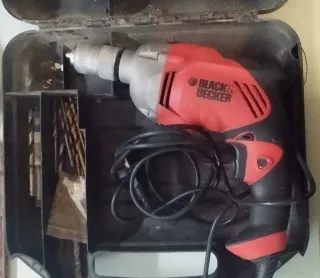Taladro eléctrico Black & Decker en su maletín original. - Incluye juego de brocas. - Color rojo y negro.