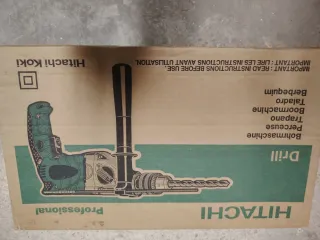 Taladro rotativo Hitachi en su maletín original. - Incluye brocas de diferentes tamaños. - Incluye cepillo. - Maletín de transporte.