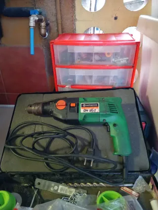 Taladro Hitachi DV20VC con brocas y herramientas