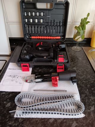 TALADRO con : Maletin, 1 Cargador, 2 Baterias de Litio de 48 V y 24 Accessorios. 40 € PISTOLA con 2 Tiras de Tornillos (50 unidades x cada tira ),tiene 3 posiciones para ir Atornillando. 20€ Puedes Elejir SOLO taladro 40 € / SOLO Pistola 20 €. TODO NUEVO los 2 x 50€ (Antes 60€) NO NEGOCIABLE. Construcción,Carpintería, Plaudur etc NO ENVIO SE A DE RECOJER