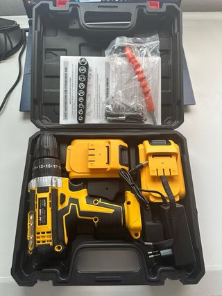Maletín con taladro inalambrico sin cable con 2 baterías de Litio de 3.0Ah recargables.Nuevo sin estrenar. Gran capacidad y duración. Con accesorios.