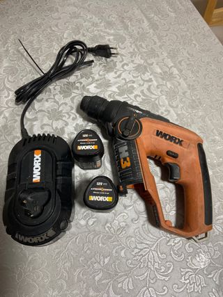 Taladro percutor y atornillador Worx H3, modelo WX390.1. y taladro percutor atornillador compacto WX372.7 - Incluye maletín para el H3, el cargador y las 2 baterías de 2.Ah. - 2 Batería de 2.0Ah. - 1 batería de 4.0Ah Todo funciona bien, se puede probar.