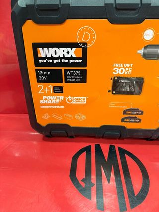 Taladro Worx WT375 con un kit de 30 piezas. Incluye dos baterías de 20V y 2.0Ah, cargador y maletín. Somos tienda fisica, damos 2 años de garantia. - Taladro Worx WT375 - Kit de 30 piezas - 2 Baterías Worx 20V 2.0Ah - Cargador - Maletín de transporte