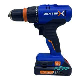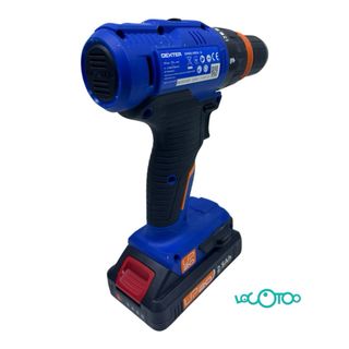 Taladradora Dexter con mango auxiliar. - Color azul y gris. - Mango auxiliar negro. - Cable de alimentación negro.