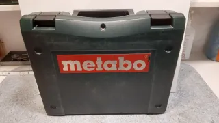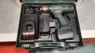 Taladro atornillador inalámbrico Metabo en su maletín. Portabrocas de 13mm - Incluye taladro, cargador y cable y 2 baterías - Color verde y negro.