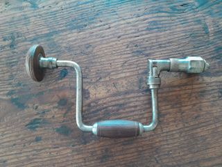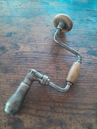 Herramienta manual clásica para taladrar. Ideal para trabajos de carpintería o coleccionismo. Mide 36x15cm - Mango principal de madera. - Empuñadura superior de madera. - Cuerpo de metal. - Mecanismo de giro.