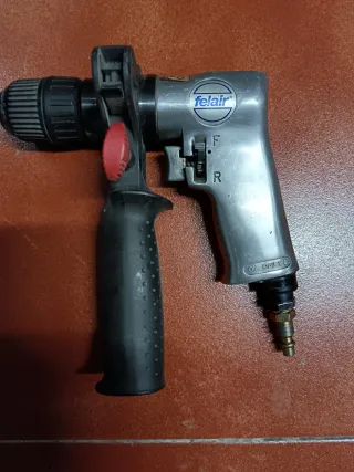 Taladro neumático de la marca Felair, ideal para trabajos que requieran potencia y precisión. - Cuerpo metálico plateado. - Empuñadura ergonómica negra. - Selector de giro (F/R). - Gatillo rojo.