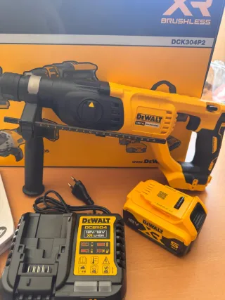 Kit de herramientas Dewalt, incluye taladro, amoladora angular, cargador y caja de almacenamiento TSTAK. Todo nuevo a estrenar. - Taladro percutor Dewalt XR 18V . - Amoladora angular Dewalt con protección. - Cargador rápido Dewalt 4A. - 2 Baterías 5 amperios - Caja de herramientas Dewalt TSTAK.