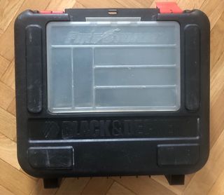 Maleta de almacenamiento de la marca Black&Decker. Ideal para guardar herramientas. Fabricado en plástico de alta resistencia. Roces externos ligeros por el uso. - Compartimentos interiores para organización. - Tapa transparente.