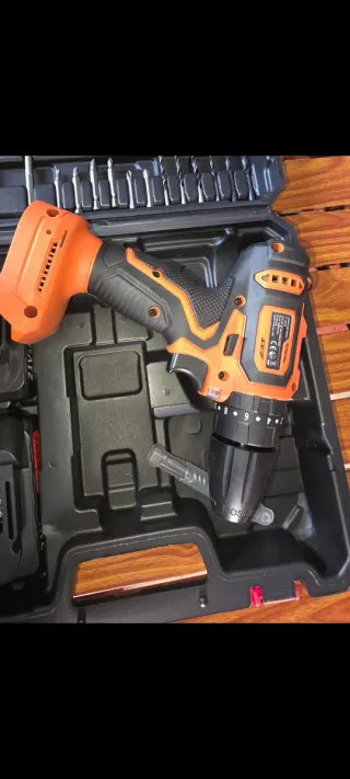 Taladro a batería con maletín y 2 baterías