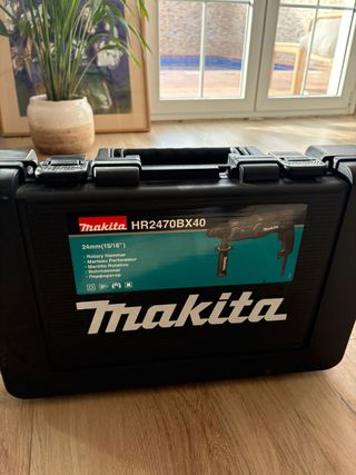 Taladro percutor Makita HR2470BX40 en perfecto estado, con su maletín original. Ha sido usado en dos ocasiones únicamente. - Modelo: HR2470BX40 - Tipo: Rotary Hammer / Martillo Perforador - Tamaño: 24mm (15/16) - Incluye maletín de transporte.