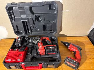 Se vende lote de herramientas Milwaukee, incluye taladro percutor y taladro de pladur. - Taladro percutor Milwaukee con batería de 4.0 Ah. - Cargador rápido Milwaukee. - Taladro de pladur Milwaukee con batería de 2.0 Ah.
