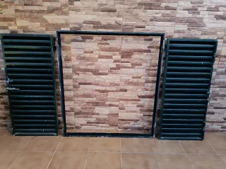 Conjunto de 3 contraventanas mallorquinas de aluminio, muy fáciles de instalar. Las medidas son de 100cm x 110cm. - Instalación sin obras, solo es necesario realizar 4 taladros en el hueco de la ventana (ver fotos). - Muy buen estado aunque es necesaria una mano de pintura. - Diseño de lamas horizontales. El precio por separado sería de 70€/ventana y el de las 3 juntas sería de 55€/ventana (total 165€).