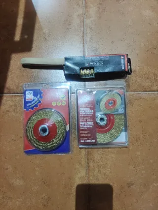 Set de cepillos de alambre para eliminar óxido y pintura. - Incluye cepillos circulares para amoladora - Marca Bellota.