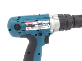 Taladro eléctrico de la marca Makita. - Cuerpo metálico y empuñadura de plástico.