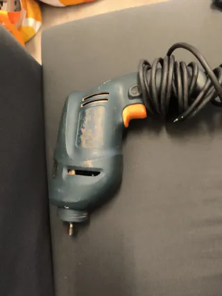 Taladro eléctrico con cable. Ideal para trabajos en casa o reparaciones. - Color azul y naranja. - Mango ergonómico.
