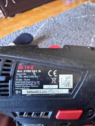 El precio mostrado es el de venta en nuestra tienda. El precio de este producto en nuestra página web puede ser diferente. Este artículo está disponible en nuestra tienda de Palma de Mallorca. taladro electrico wurth master sb 13-rls CC076_E467243_0 es un objeto que se ofrece en estado correcto. Todos nuestros productos cuentan con garantía de 3 años y un plazo de devolución de 14 días. Percutor: Si | Marca: Wurth | Modelo: Master sb 13-rls | Accesorios: 0 | Potencia: 850 | Velocidad regulable: No | Empuñadura: No | Llave portabroca: No | Reversible: Si | Regulador de velocidad automatico: Si | Sistema de bloqueo: Si | Tipo