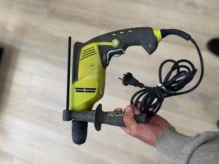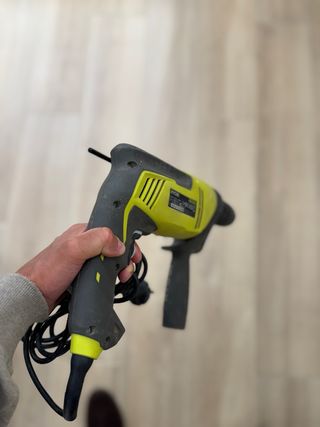 Taladro eléctrico de la marca Ryobi con una potencia de 750W. Ideal para trabajos de bricolaje y construcción. - Mango ergonómico para un agarre cómodo. - Cable de alimentación incluido.