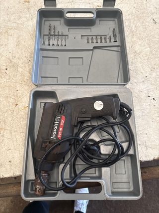 Taladro eléctrico Casals de 570W, ideal para trabajos en casa o profesionales. Se vende en su maletín original. - Incluye brocas y puntas. - Maletín de plástico resistente.