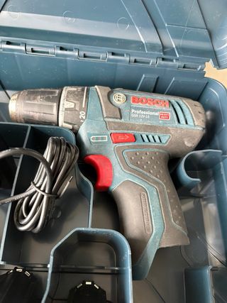 Se vende taladro Bosch profesional de 12V, junto con sus accesorios. - Incluye dos baterías de 2.0 Ah Li-Ion. - Cargador de baterías Bosch. - Maletín original Bosch para transporte y almacenamiento. Una bateria nueva sin estrenar, cargador y maletín nuevos.