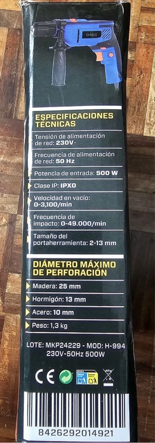 Taladro percutor DHG modelo H-994. - Empuñadura ergonómica. - Limitador de profundidad. - Máxima frecuencia de impacto: 49.000 RPM.