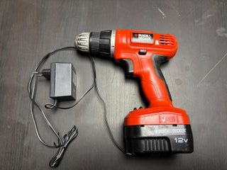 Taladro atornillador Black&Decker EPC12. 12V. Batería de 1,0 Ah en buen estado. Incluye cargador. Control electrónico. Velocidad variable: 0-750 rpm. Portabrocas sin llave: 10mm 22 posiciones de pares de giro. Giro reversible. Empuñadura antivibraciones ergonómica. - Color naranja y negro. - Batería de 12V.