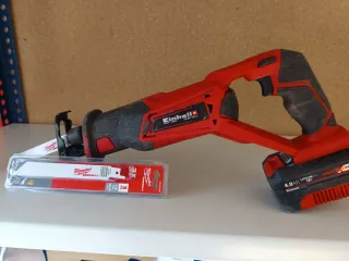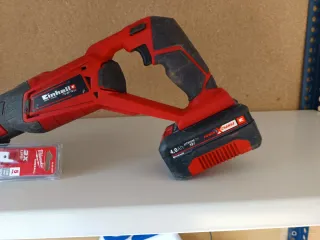 Se vende sierra de sable Einhell con batería y cargador, junto con un paquete de hojas Milwaukee Sawzall. - Sierra de sable Einhell TE-AP 18 Li. - Batería Einhell 4.0Ah 18V. - Cargador Einhell. - Paquete de 5 hojas Milwaukee Sawzall 150mm 10 TPI para metal. Taladro a batería y 2 baterias