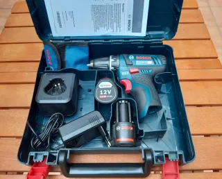 Atornillador BOSCH GSR 12V-15 Taladro BOSCH GSR 12V-15 Taladro, taladradora, a bateria, autónomo, recargable. Trompo, atornillador. Bosch. Professional. profesional. Serie gama azul. Completo: Taladro, Cargador, 2 Baterias, Maletín rígido. P074Y95C
