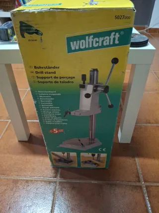 Soporte para taladro de la marca Wolfcraft, modelo 5027000. OJO LA FOTO DE LA CAJA PUEDE LLEVAR A ERROR. NO ENTRA LA MORDAZA. SOLAMENTE EL SOPORTE - Bohrständer - Drill stand - Support de perçage - Soporte de taladro - Colonna angolare - Stojak wiertarski - Κολώνα κεφαλής - Sonda de guiarine - Сверлильный станок