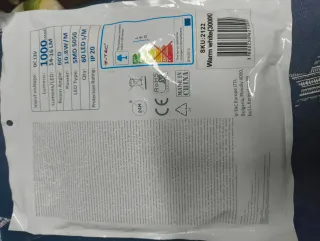 Tira de LED de 5 metros de longitud, ideal para iluminación decorativa o funcional. Proporciona una luz cálida y agradable. - Longitud: 5 metros - Flujo luminoso: 1000 lm/m - Temperatura de color: 3000K (blanco cálido) - Voltaje de entrada: DC 12V - Tipo de LED: SMD 5050 - Ángulo de haz: 60 grados - Protección: IP20