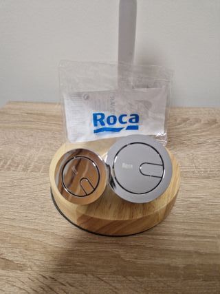 Conjunto de pulsadores para cisterna de inodoro de la marca Roca. Disponibes en tamños de diámetro 5,8 cms y diámetro 4,8cms. Se venden por unidades - Acabado cromado brillante. - Diseño moderno y elegante.