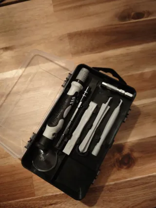 Práctico set de destornilladores de precisión para reparaciones delicadas. - Incluye mango ergonómico. - Variedad de puntas para diferentes tornillos. - Estuche organizador.