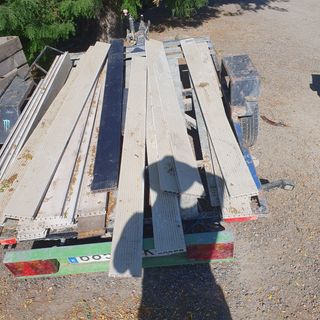 Tablones de madera tropical para exterior, ideal para zonas de piscina o jardín, o para bricolaje. - Superficie total: 42 metros cuadrados. - Madera tropical resistente a la intemperie. - Ideal para exterior. Solo ventas en persona