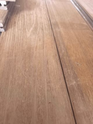 Suelo de tarima composite para exterior, ideal para terrazas o jardines. Se vende por cambio de proyecto. - Compuesto por mas de 50m2 de tarima. aprox unos52, pero se vende todo como si fueran 50m2 - Color marrón oscuro. - En buen estado, con algunas señales de uso visibles en las imágenes. - Listo para instalar.
