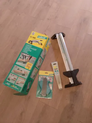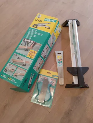 Herramienta Wolfcraft LC 600 para cortar tarimas laminadas. Más las dos herramientas de la foto, la he usado para colocar 40mts de tarima. - Modelo LC 600. - Corte de 0 a 180 grados. - Grosor máximo de corte de 11 mm. - Ancho máximo de corte de 465 mm. - Fabricado en Europa.
