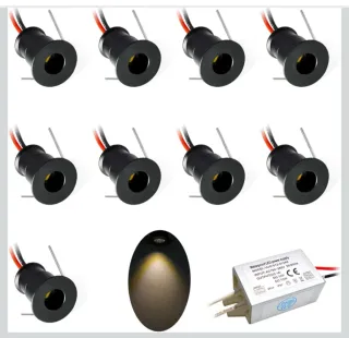 Ñ1 -ESTADO: SIN USO. NO FUE MONTADO!✅ Lámpara empotrable para decorar, 9 unidades, 12 V, 1 W, 30°, foco LED empotrable para cocina, escaleras, armario, iluminación de casa, vitrinas, pequeño foco LED, carcasa negra, Luz cálida. La minilámpara spot KPSLucerna utiliza tecnología de fundición a presión de aluminio de grado aeronáutico, logrando un equilibrio perfecto entre resistencia y ligereza (peso reducido en más de un 40% comparado con lámparas de hierro). 90 lúmenes, un CRI >80, reemplaza perfectamente a una bombilla incandescente de 10W. Perfecto para decoración de mostradores, dormitorios, cocinas, baños y armarios.