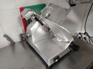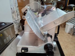 Cortadora de alimentos de uso profesional, ideal para carnes, quesos y embutidos. - Construcción robusta en acero inoxidable. - Protector de seguridad transparente. - Disco de corte de alta precisión. - Ajuste de grosor de corte.