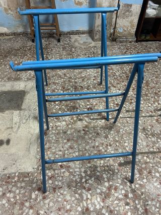 Par de banquetas metálicas de color azul. - Estructura tubular. - Diseño plegable.