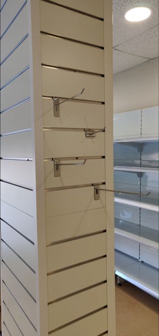 Placas para colgar producto. 8 piezas color blanco con aluminio. Se puede poner en la columna como se ve en la fotos o en la pared. Para fruterías, tiendas de alimentación.