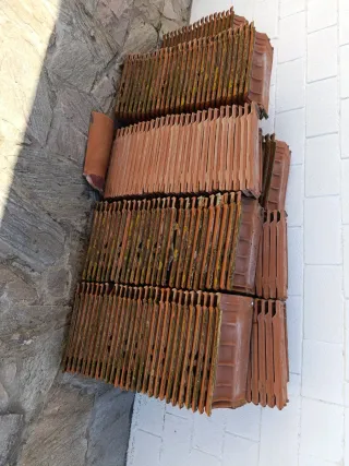 Se venden 260 tejas cerámicas en buen estado. Ideales para tejados, reformas o reposición. Como se ve en la imagen, están apiladas y bien conservadas, con desgaste normal por uso pero totalmente funcionales. La mayoría están una parte de ella esta pintada con pintura antigoteras. Perfectas para proyectos de obra o para dar un acabado rústico. Se venden en lote completo. Recogida en persona. Para más información, escríbeme sin compromiso.