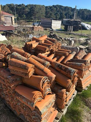 Lote de tejas árabes antiguas, perfectas para proyectos de restauración o construcción con un toque rústico. - Material: Cerámica. - Color: Terracota. - Diseño: Curvo tradicional. Consultar zona de entrega. Precio según volumen de compra