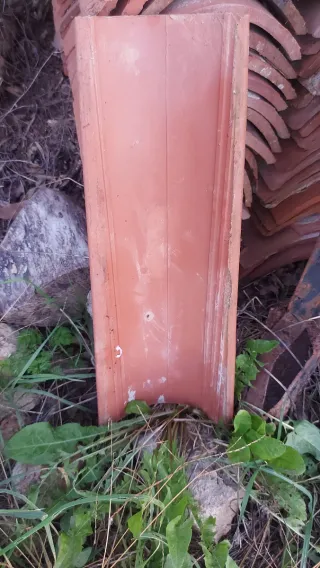 Teja árabe de barro, ideal para tejados tradicionales o decoración. Tengo la cantidad de 143 unidades - Material: Barro cocido. - Color: Terracota.